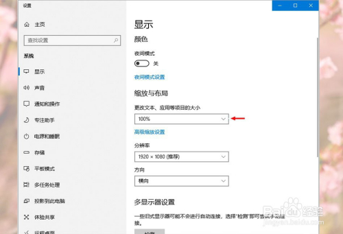 将更改文本、应用等项目标大小点窜为100%
