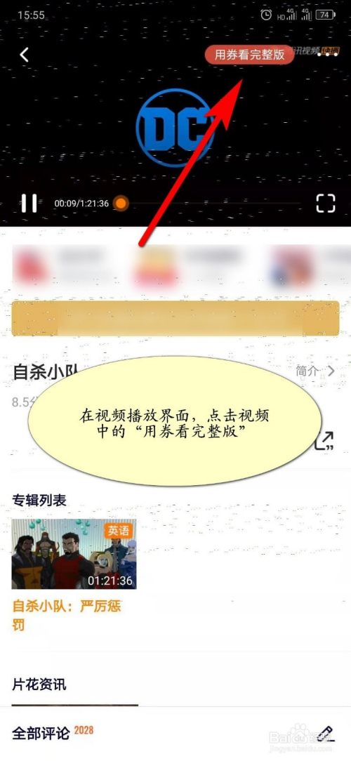 5、在视频播放界面,点击视频中的“用券看完整版”