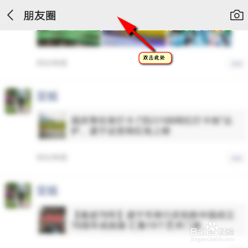 - 4进入朋友圈后,往下翻到必然水平,快速双击红色箭头所指的位置,如下图所示