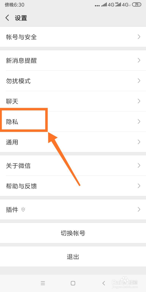 在设置页面选择第五个选项【隐私】。