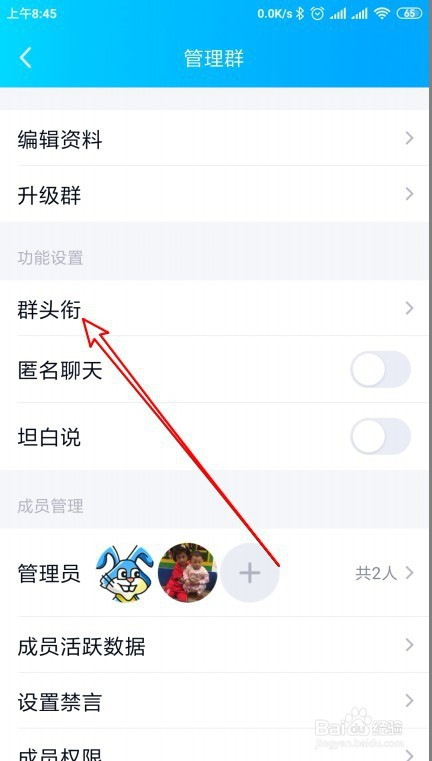 然后在打开的办理群的页面中点击“群头衔”的菜单项。