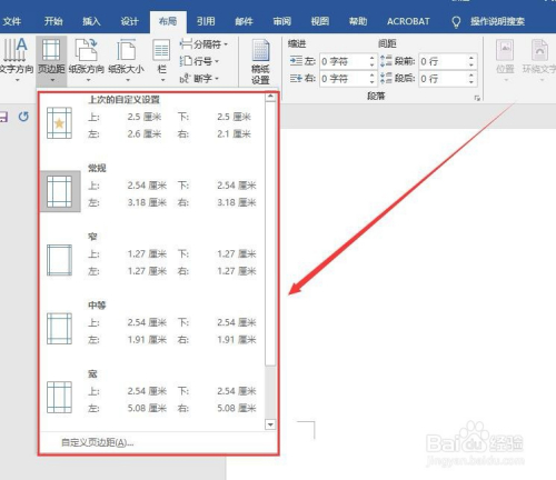 拔取想要的页边距,也可以自界说边距,然后每页反复此步调,这样word页边距就设置好了。