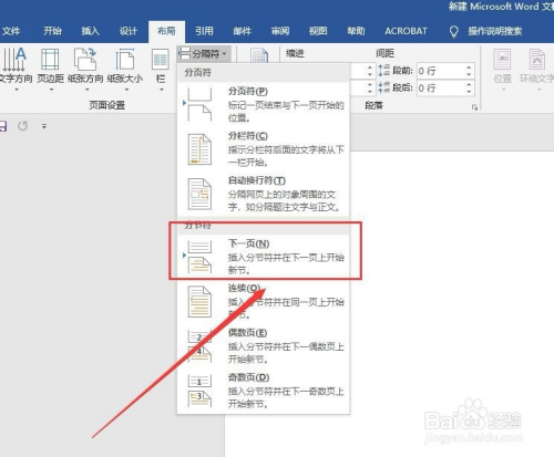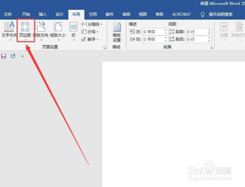光标主动跳到第二页,点击“页面结构”中的“页边距"。