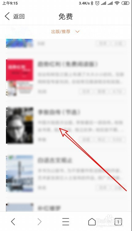接下来在打开的免费的图册页面中点击想要阅读的小说。