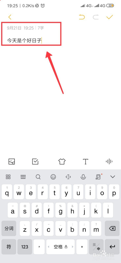 在编纂页面输入本身想要输入的内容,例如“今天是个好日子”。