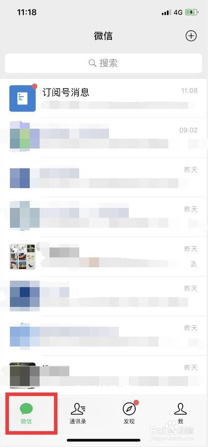 点击西方导航栏的微信聊天栏