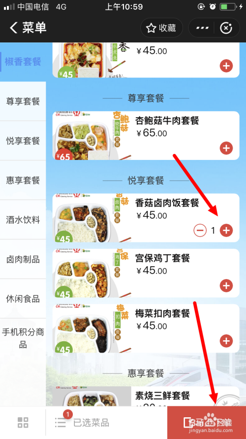 进入下一个页面后,按照页面左侧的分类选择本身喜好的食物。