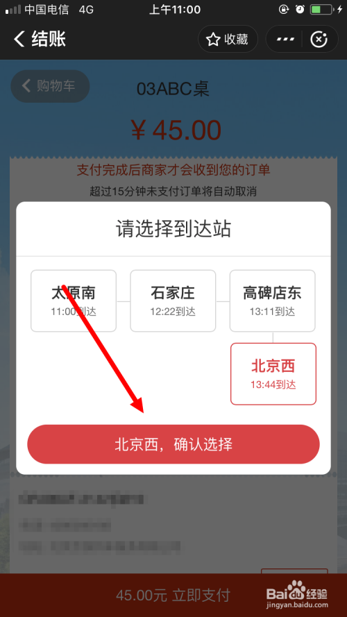 接下来是要选择 达到站 。