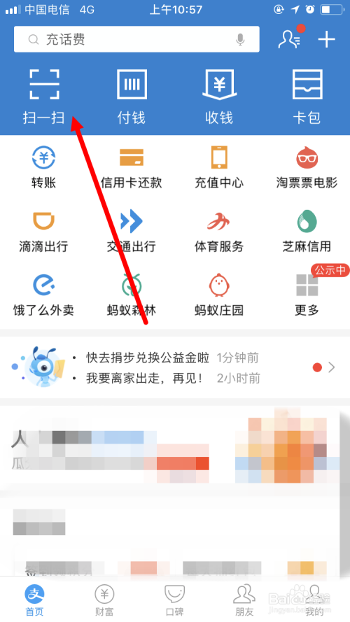 首先我们要利用支付宝 扫一扫 座位扶手上的点餐 二维码 。