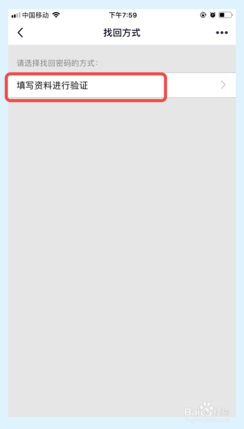 在接下来的界面,选择并点击【填写资料进行验证】选项。