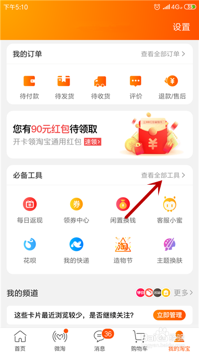 第二步,在淘宝首页,点击“我的淘宝”选项。