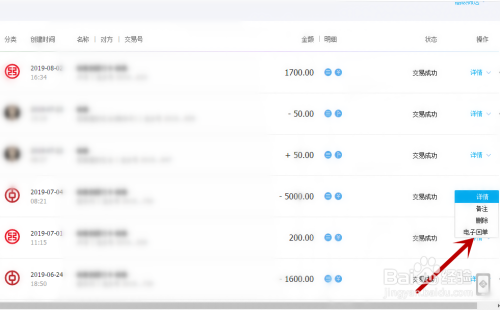 在银行卡转账中,移动到详情,接着点击【电子回单】。
