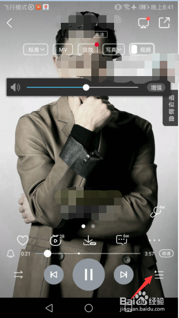 在显示倍速的播放的条,拖动中心的原点标的目的右,即可调整歌曲播放的变快。