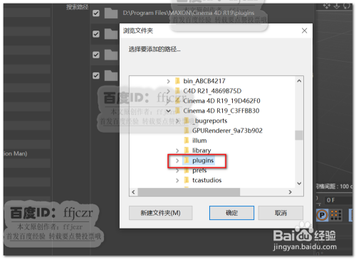 在弹出的对话框中找到低版本插件的保留文件夹(plugins),确定后即可加载这个文件夹中的所有插件到R21扩展栏中。这样资本共用可更节流空间。当然若是只想加载此中一个插件,只要找到该插件的文件夹加载即可。