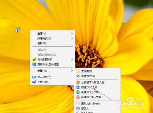 打开电脑,鼠标右键选择新建-新建doc文档,如图。