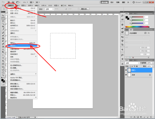 点击【矩形选框东西】,按图示在作图区域绘制出一个矩形选框。点击右下角【新建图层】图标新建一个图层后,点击【编纂】-【描边】,弹出描边设置栏并按图示设置好描边的各个参数;
