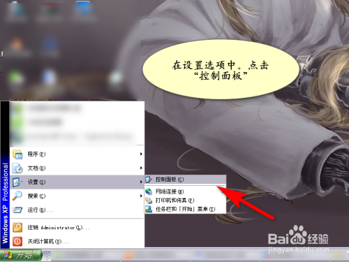 在电脑桌面,点击左下角的“起头---设置---节制面板”即可打开XP系统的节制面板。