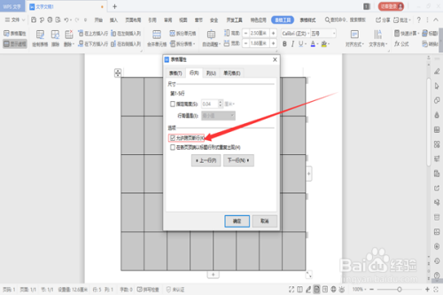 然而在行的页面选项中在选项栏打消“勾选”许可跨页断行选项。