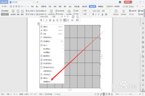 然后选中表格单击右键选择“表格属性”选项。