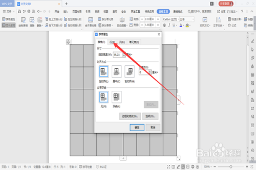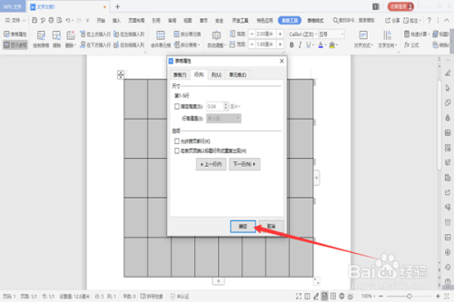 打开表格属性对话框中单击“行”选项。