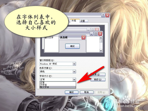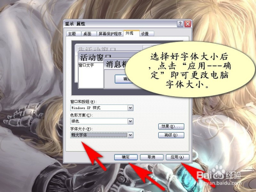 3、选择好字体后,点击“应用---确定”即可更改电脑字体大小