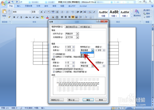 进入段落界面,点击【特别格局】下的下拉三角按钮。