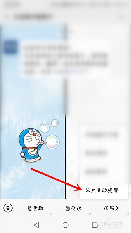 进入公家号,点击右下角汇办事,选择账户变更提醒。