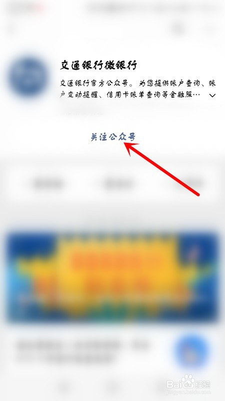 在搜索框输入交通银行微银行,点击存眷公家号。