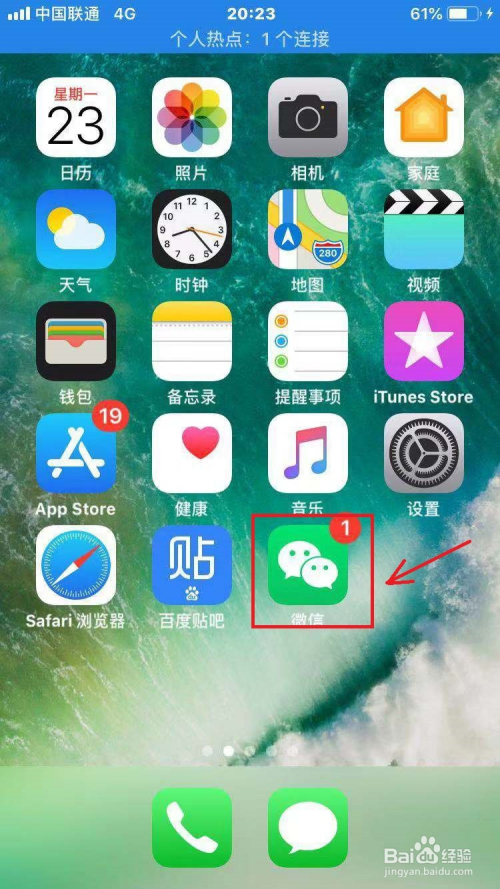 第一步:解锁我们的手机,点击微信进入。