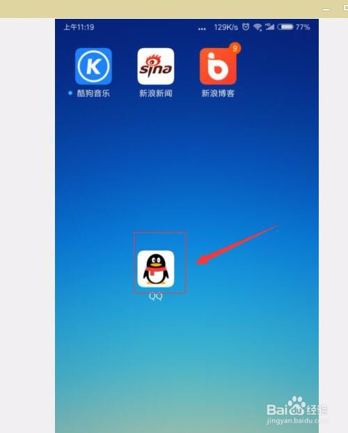 在手机上找到QQ,启动QQ程序。