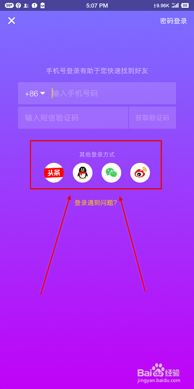除此之外,我们可以在“登录界面”的下方找到一个【其它登岸体例】,同样也是在登录后主动注册的。