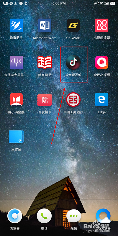 首先,我们仍是照常在手机应用界面打开【抖音短视频】。