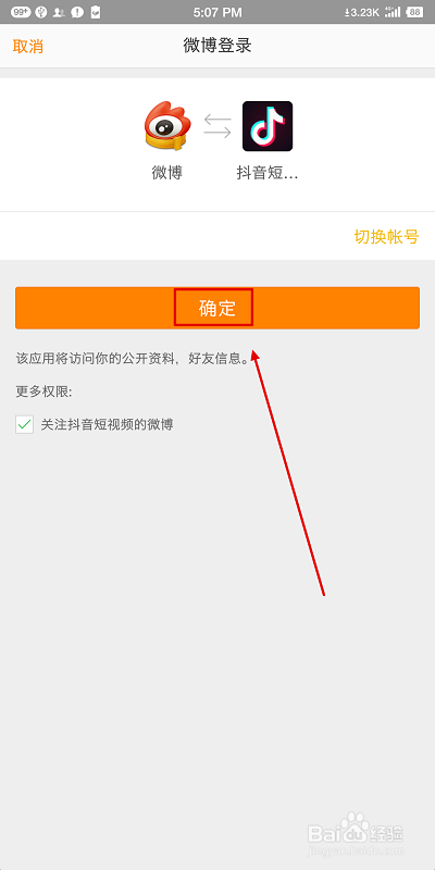 四、点击“社交APP”图标,登录该“APP账号”后,选择“确定”即可绑定账号、完当作授权以及注册抖音账号。