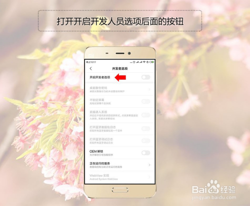 进入开辟者选项后,我们打开开启开辟者选项后面的开关按钮