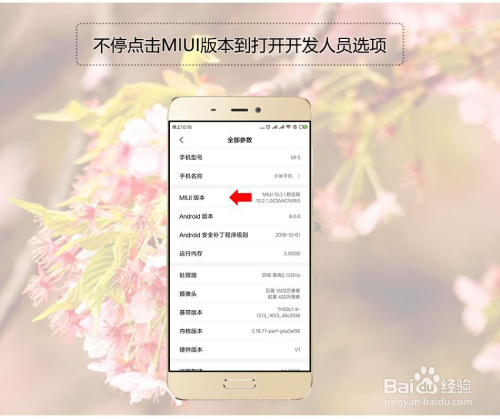 然后不断点击周全参数界面的“MIUI版本”直到提醒已经打开开辟者模式