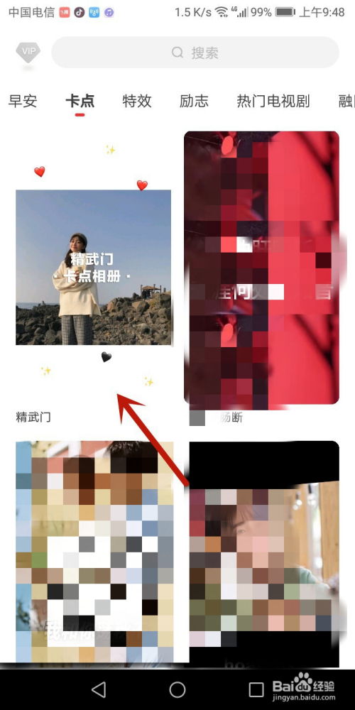 打开飞推App,在卡点视频里面打开“精武门”如图所示