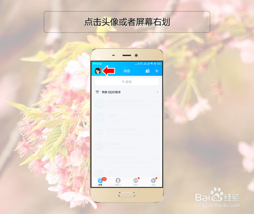 进入手机QQ后,我们点击左上角的头像或者屏幕右滑