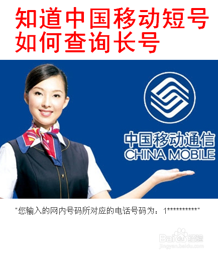 知道中国移动短号,如何查询长号:我们知道跟我们在统一个移动集团内的短号,而不知道对应的长号,想要查询长号,怎么办呢?在百度里搜刮,有人说发短号到10657000查询,有人说发送4001空格+短号到10086查询,可是我本身试了,都没有用果,于是在网上问了移动的在线客服,获得领会决。
