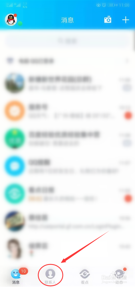 进入了联系人页面后,点击页面中部的【搜刮】文本框,进行联系人的搜刮