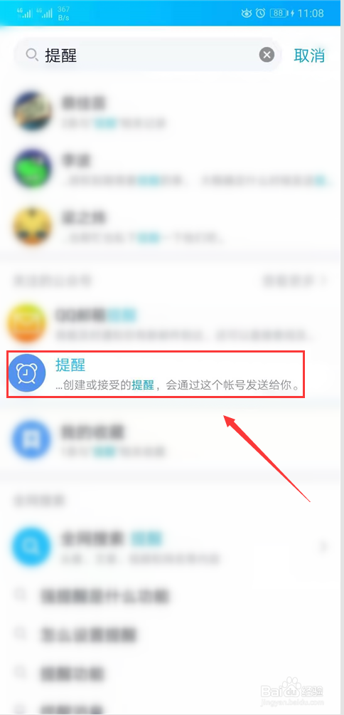 在搜索框中搜刮【提醒】关头字,在成果列表中殷勤公家号中的【提醒】,然后点击进入到提醒本家儿页面