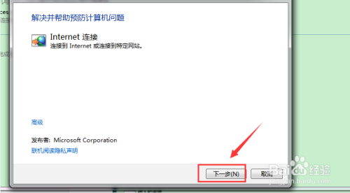 进入到了【Internet毗连】具体页面后,按步调点击下一步,就可以解决大部门明明已经连上网可是仍是上不了网的问题。