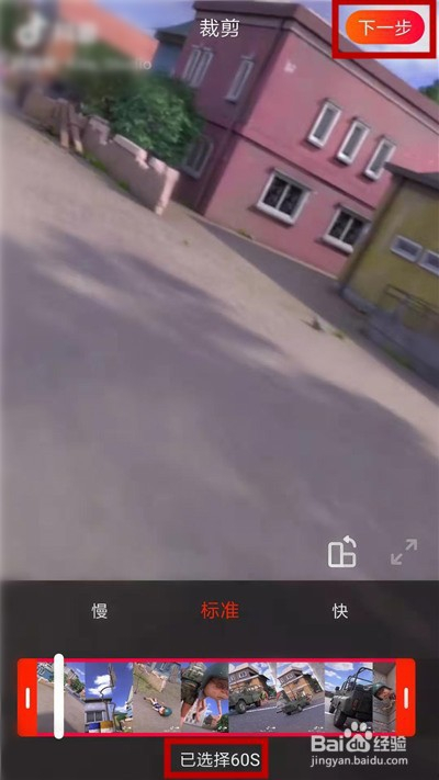 在裁剪界面,显示【已选择60秒】,点击【下一步】。