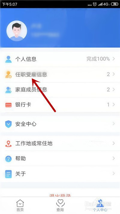 第三步,登岸后,找到“任职受雇信息”并点击。