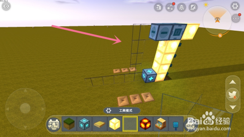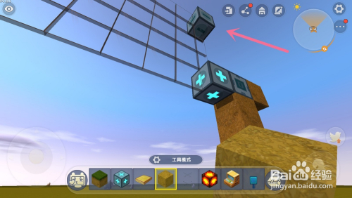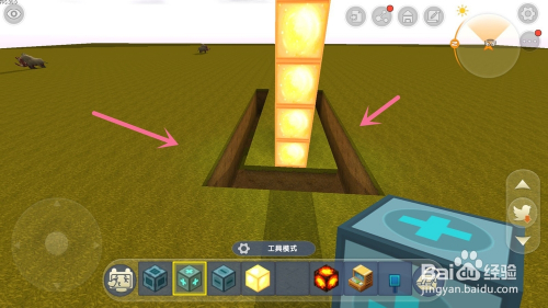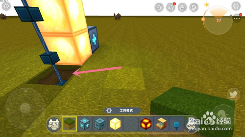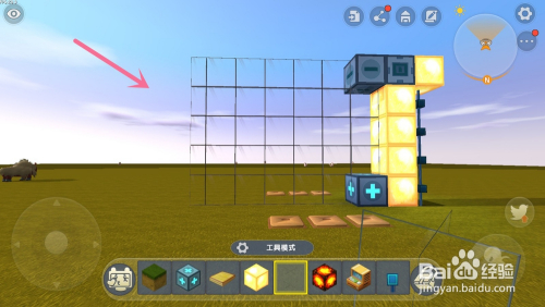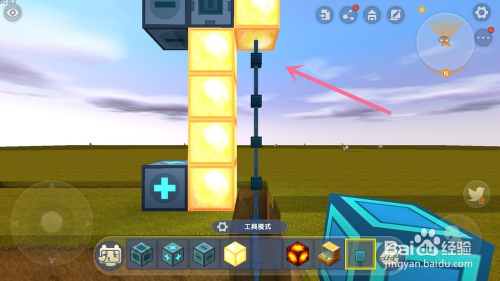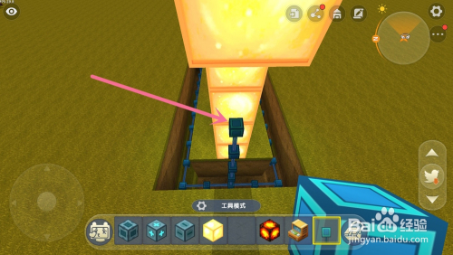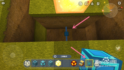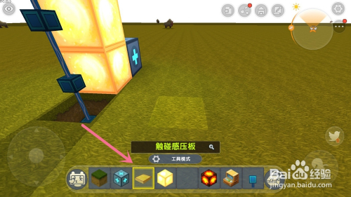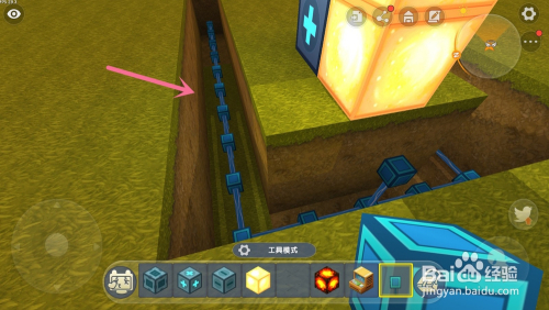 铺设开关电线,此刻就将电线拉到滑动方块上。在柱子后面点击坑里的电能线就能接上去,接到滑动方块后面的方块上就落成。