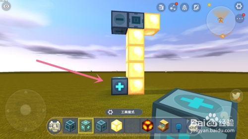 此刻将五格柱子砸失落下面4格,然后在东西栏里点击标识表记标帜器(+),并在标识表记标帜器(-)下方安装,如图2所示的。