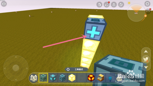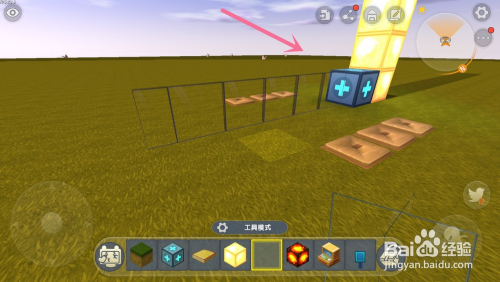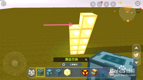 在东西栏里点击滑动方块,并在四格柱子上安装滑动方块。注重,十字必需标的目的外才行,否则主动门不会主动开门,如图所示。