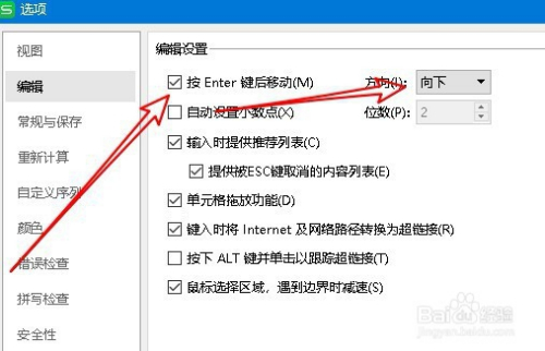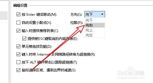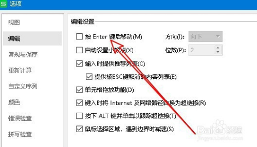 然后在右侧打开的编纂窗口中找到“按Enter键后移动”的设置项。
