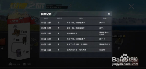 我们可以在左侧的摸索记实里查询,获得的物资在仓库查看。