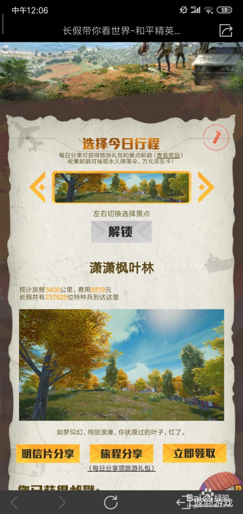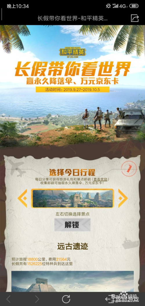 进入活动页面,我们选择一个行程点击解锁;