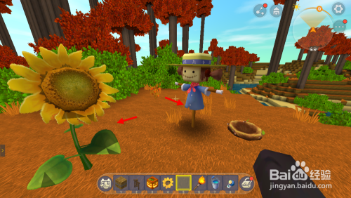 将标的目的阳花拿在手上走路,稻草人就会一向跟着你,就这样我们将稻草人移动到庄稼四周。